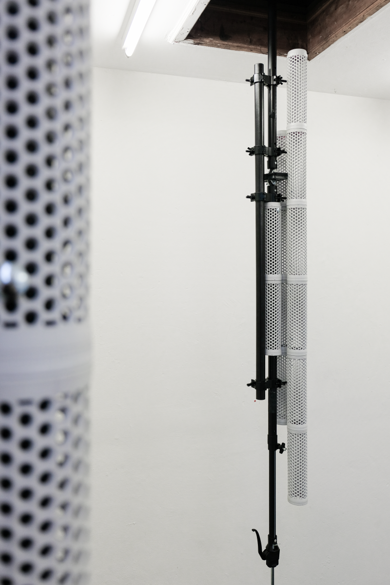 benjamin schoones places self-produced, sometimes modified or ready-made objects in constellations that nest within their given architecture. Chosen off-the-shelf parts are often linked to distribution and manufacturing processes that may have eventually been rendered obsolete. These works are sometimes supported by sounds & written gestures. Instead of following a fixated argument, it tends more toward exploring the incomprehensible feelings of disorientation in ever-changing tensions and (infra)structures. Rhythm, repetition & juxtaposition that leaves room for doubt, inertia, and physical engagement. Zooming in and out, circling from outside interactions of cold distances to inner somatic processing in interaction with all these surrounding synthetics. In this sense, the objects made are not simply as it is, but become an alienated mediator.
